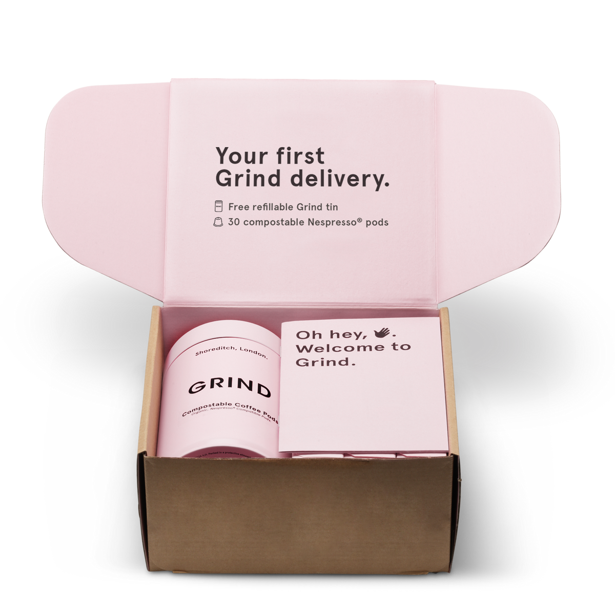 Use code GETSTARTED and get your first delivery for £10.46, plus a free refillable Grind tin and free shipping. No fuss - you can change, skip or cancel your subscription at any time.