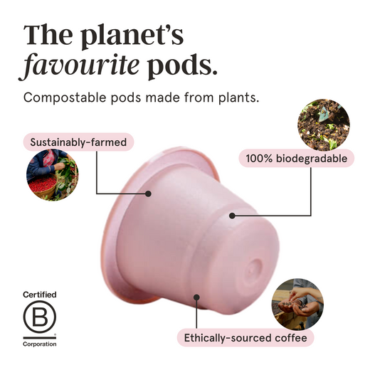 Grind coffee pods are made from plants. Unlike plastic and aluminium pods that take centuries to break down, ours don't stick around: they're home-compostable and will biodegrade faster than banana peel. An oxygen barrier keeps the coffee inside our pods fresh for months, without losing flavour or quality.