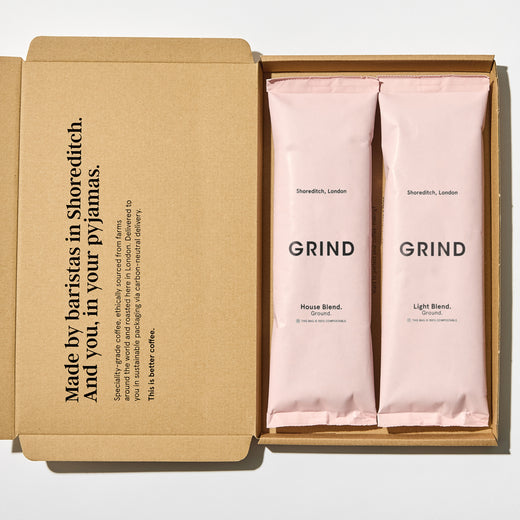 Since opening in 2011, Grind has grown to include cafés, coffee shops, and a state-of-the-art coffee roastery. You can find our speciality coffee in cafés across London, in supermarkets all over the UK, in every Soho House around the world, and up 35,000ft on British Airways flights.