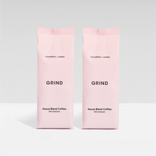 Two 227g bags of speciality whole bean or ground coffee roasted by our team in Bermondsey. Our pink coffee bags are plastic-free and commercially compostable.