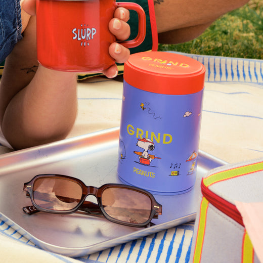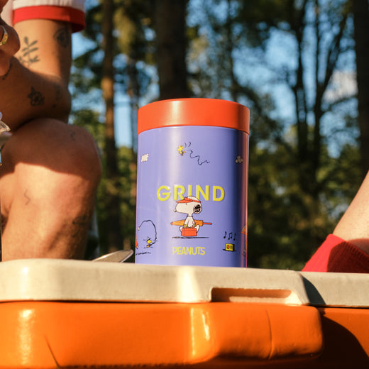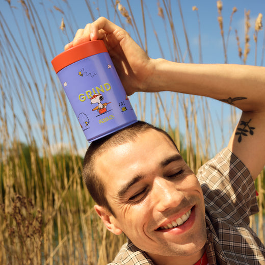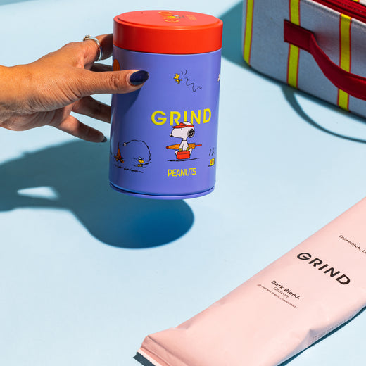 Grind x Peanuts Tin & 227g of whole bean or ground coffee in your selected blend.