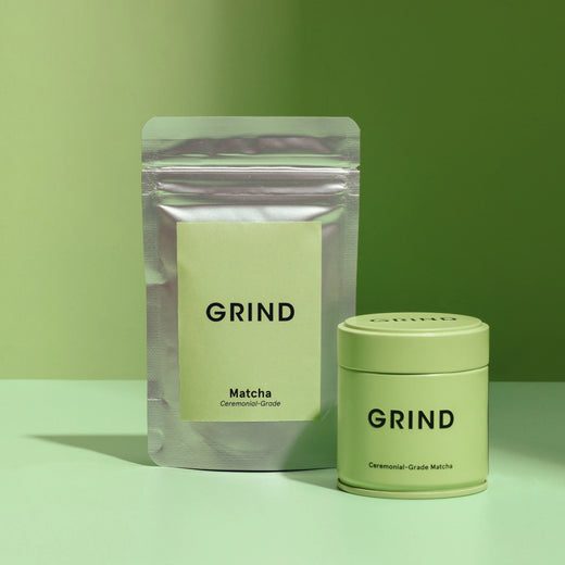 Grind matcha is a ceremonial-grade matcha sourced from the highest quality green tea leaves grown in the home of matcha: Uji, Japan. Our matcha powder contains 100% Japanese green tea. That’s the only ingredient.