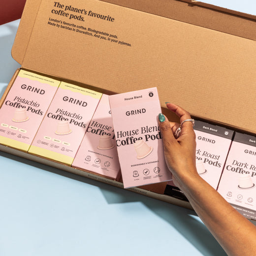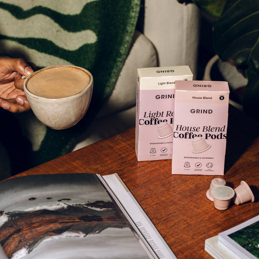 Our biodegradable pods are compatible with your original-style Nespresso® machine or with our very own Grind Coffee Pod Machine.