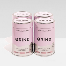 A bundle of 4 x 90g tins of speciality instant coffee in our smooth Barista Blend, ready to mix hot or cold.